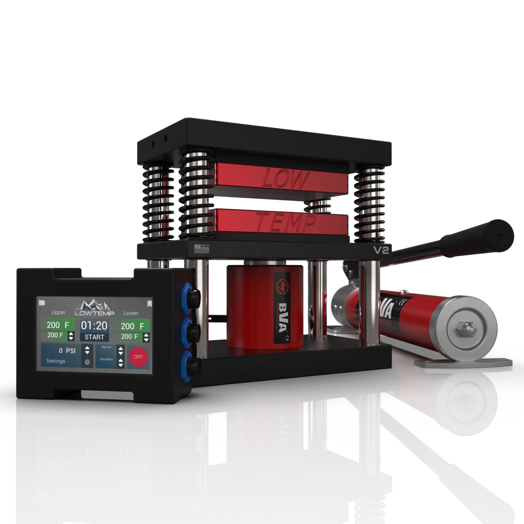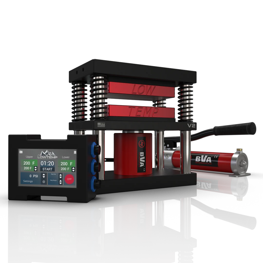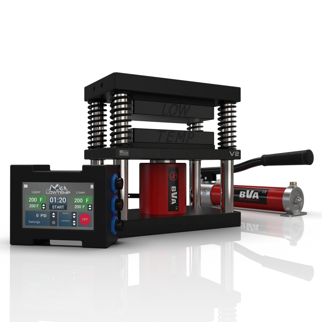 The Rosin Press from Lowtemp is a total game-changer. Record your presses through Bluetooth connectivity to the software, receive updates wirelessly, document recipes, and monitor automatically calculated PSI on the plates using a clear touch screen. With this rosin press, you can achieve professional results when processing your bubble hash or extracting rosin from your flowers.